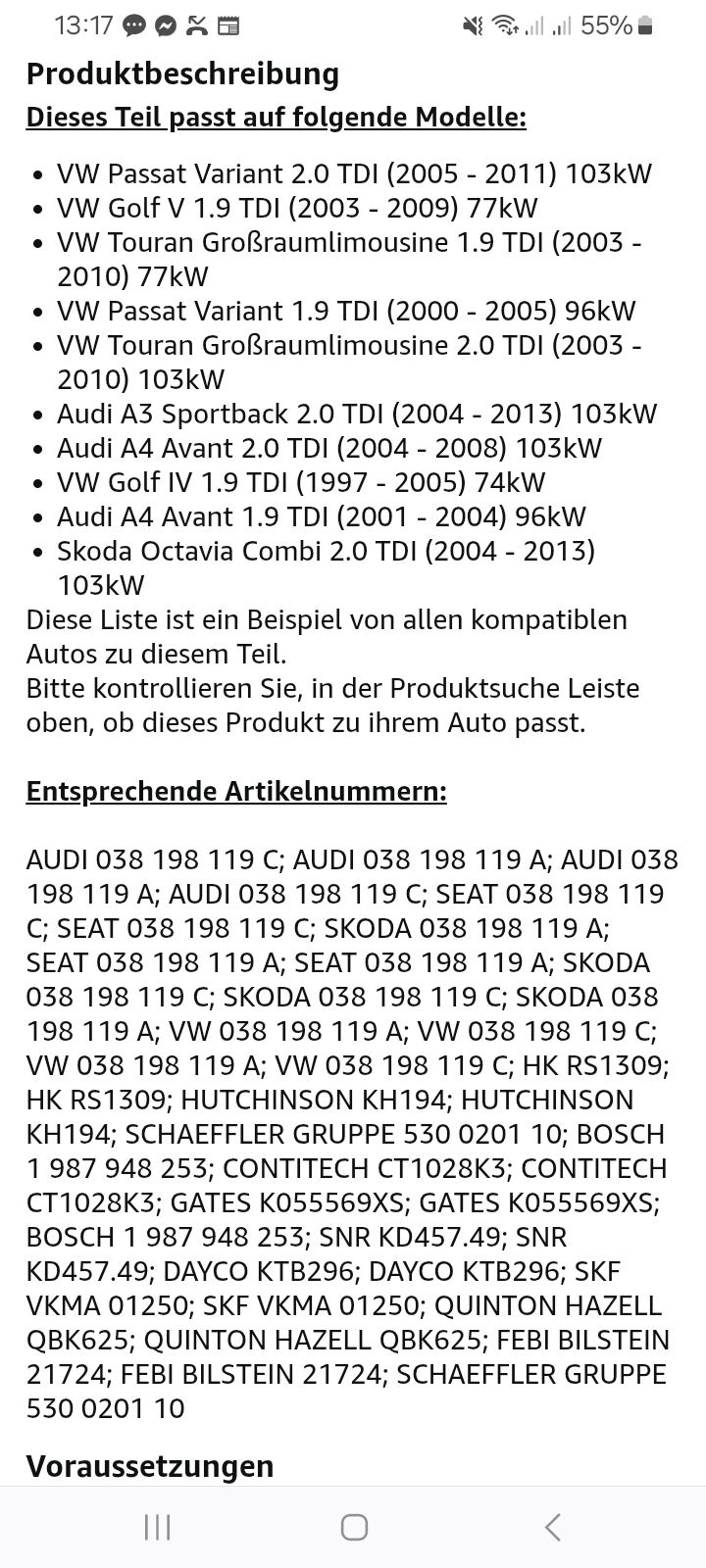Biete hier einen kompletten neuen Zahnriehmensatz für verschiedene 1,9 und 2,0tdi Modelle siehe Bilder an